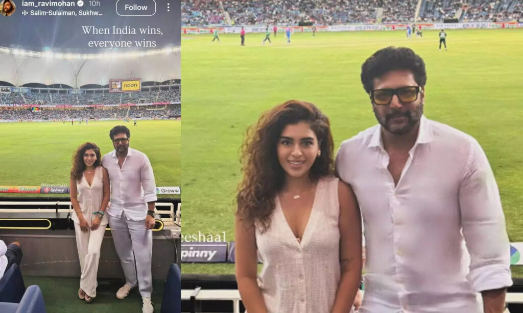 இந்தியா vs பாகிஸ்தான் போட்டியை நேரில் கண்டு ரசித்த ரவி மோகன் – கெனிஷா!